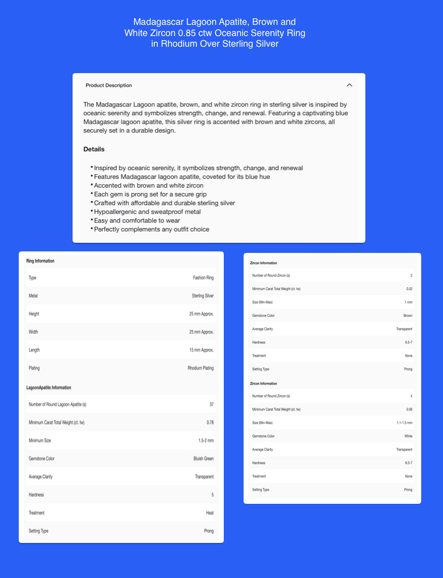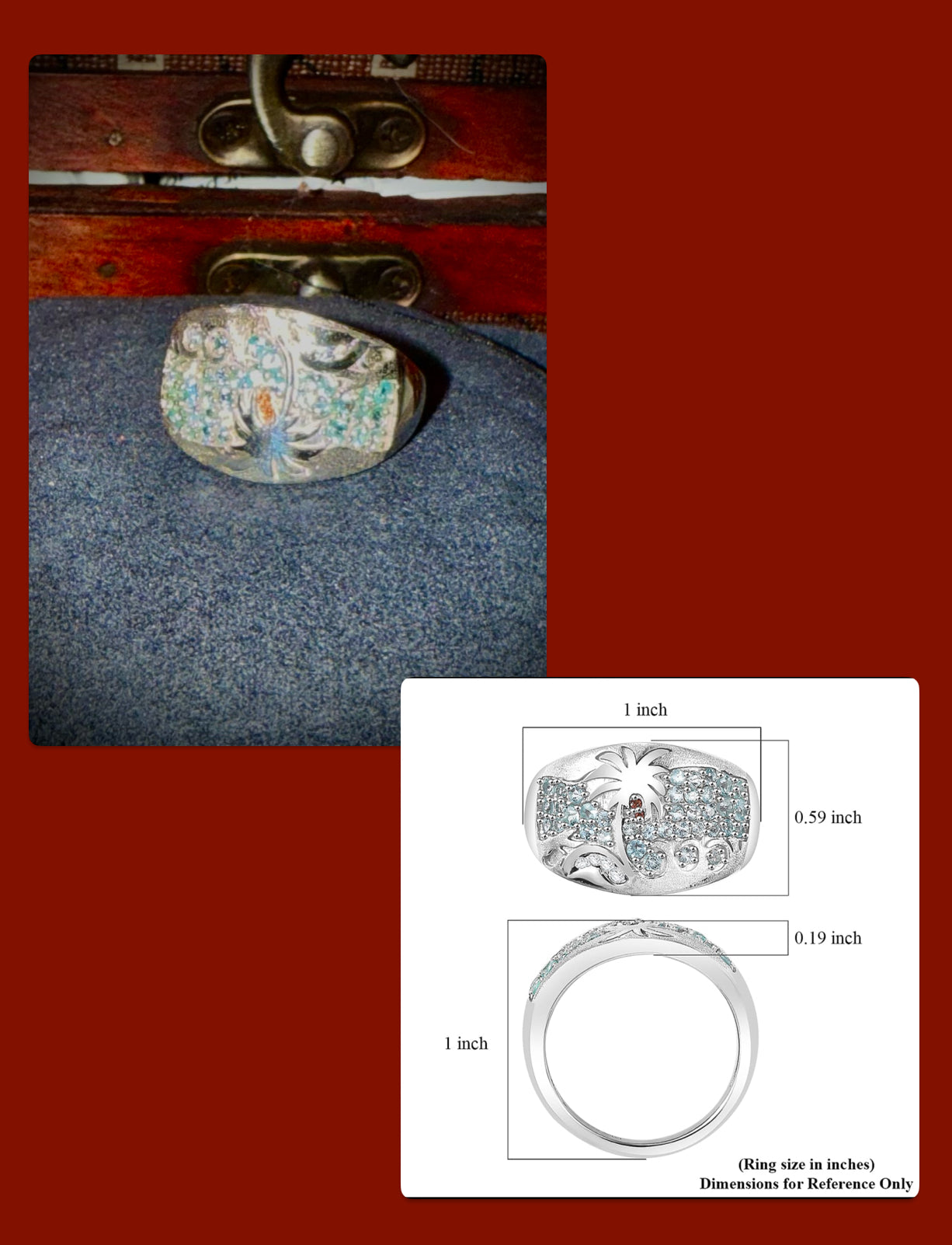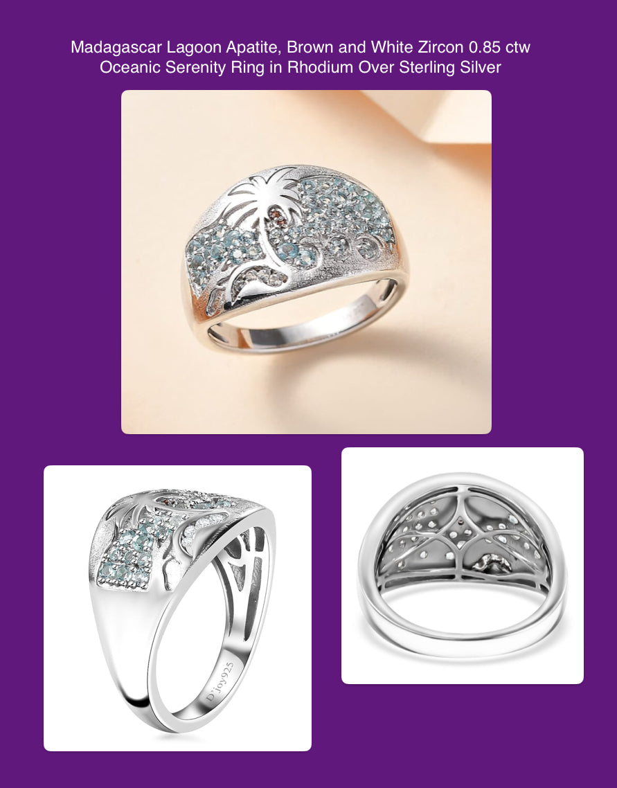 Natural Madagascar Lagoon Apatite, tw: 780, with Natural White Zircon, ctw: 080, "Oceanic Serenity", Size 9 Ring, set-in Rhodium over Sterling Silver.