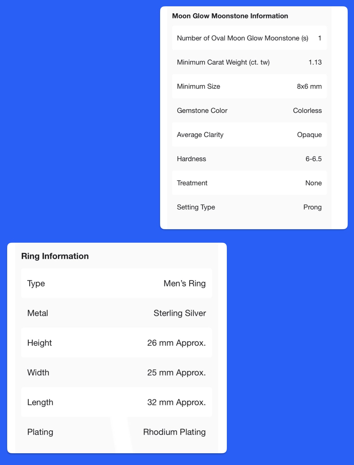 Natural & Untreated "Moon-Glow" Moonstone (ctw: 1.130) & White Zircon (ctw: .370), Men's size 13 Ring, set-in Rhodium over Sterling Silver