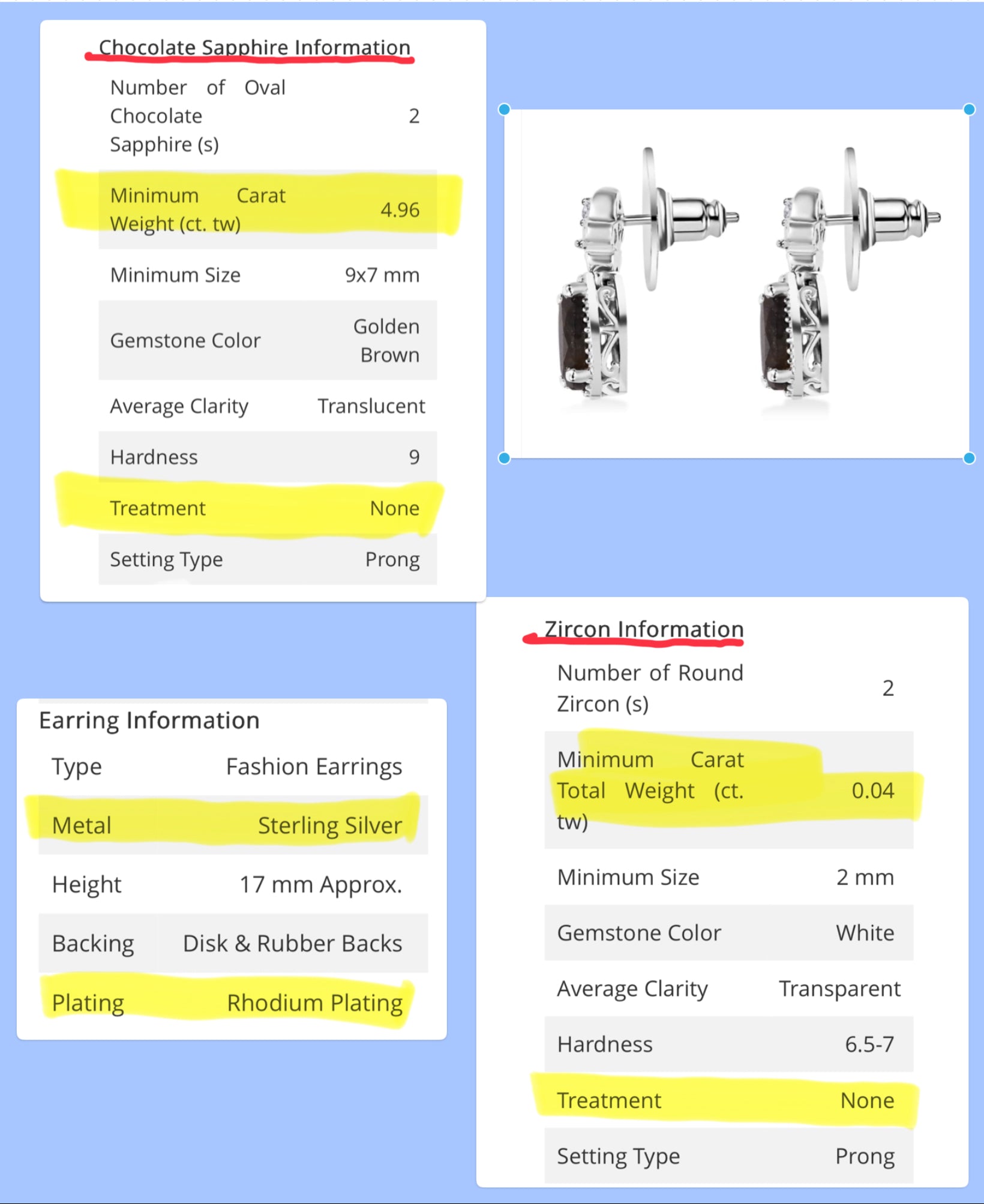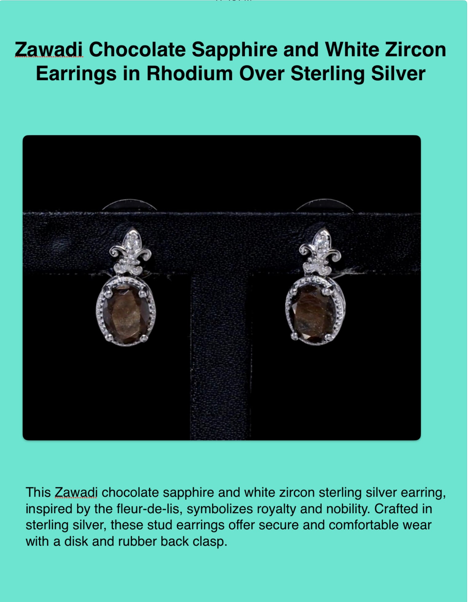 Natural & Untreated Chocolate Sapphire (ctw: 4.96) from Zawadi with Natural & Untreated White Zircon (ctw: .040), Earrings set-in Rhodium Over Sterling Silver.