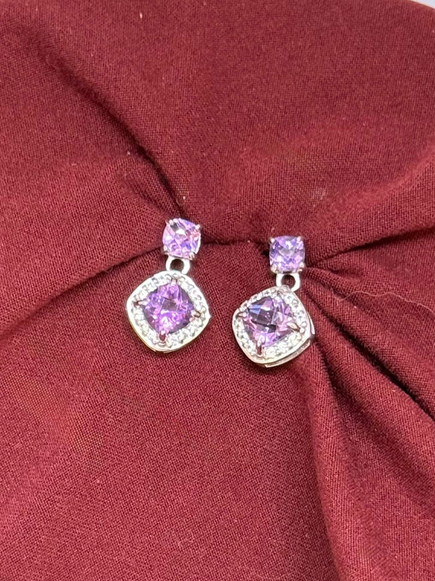 Premium African Amethyst Dangle Earrings, Sterling Silver