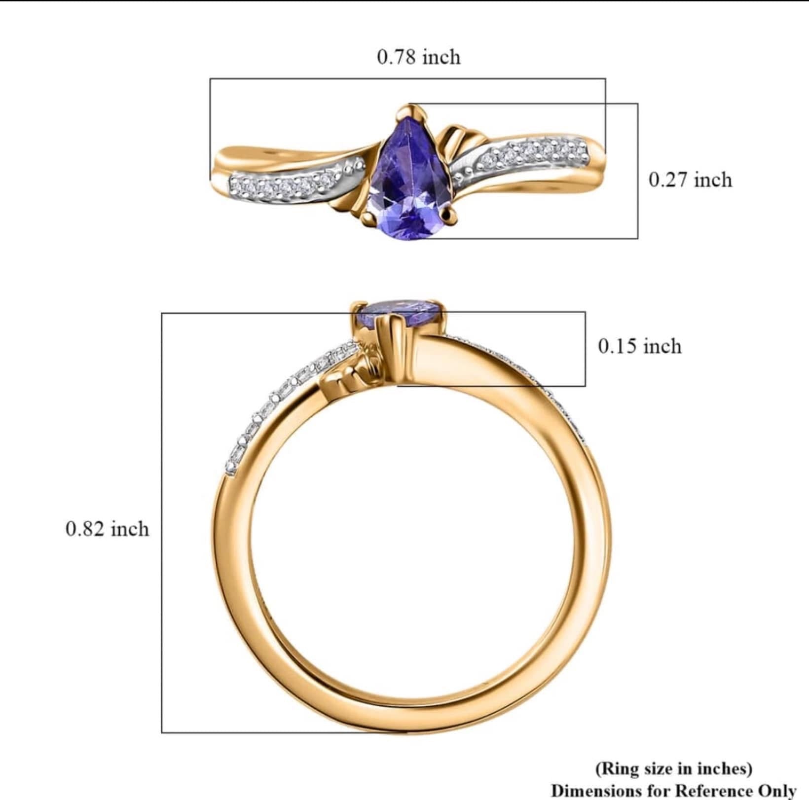 Natural Tanzanite (ctw: 400) with Natural White Zircon (ctw: 100), Size 7 Ring, set-in 18k Vermeil Yellow Gold over Sterling Silver.